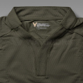 ラグビーシャツにインスパイアされた短めの襟はベストやスリングの擦れを防ぎ、ナイロンとスパンデックスを用いた生地は、耐久性、伸縮性、通気性を兼ね備え、程よいクッション性もあります。ショルターポケットは体に馴染む立体的な形状で、ベルクロでパッチの張り付けが可能。